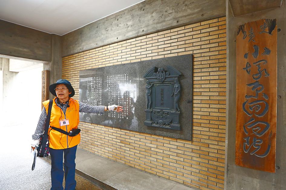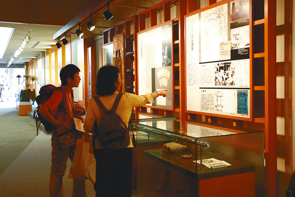 芭蕉や千住大橋の歴史を学んだ参加者たちは、芭蕉が旅立った千住大橋❺へ。心地のよい秋の風が吹き渡る千住大橋を、参加者たちは奥州へと向かう芭蕉と自分を重ね合わせながら渡りました。荒川ふるさと文化館❻では、十九世紀前半の千住の河岸周辺を再現したジオラマや荒川区内で発掘された遺跡や土器などを見学。実物や模型、映像を通じて歴史の見聞を広めました。円通寺では、戊辰戦争の壮絶さを無数の弾痕が物語る旧上野の黒門(区指定文化財)❼や彰義隊のお墓などが案内され、参加者たちは新政府軍と戦った彰義隊戦士に手を合わせます。